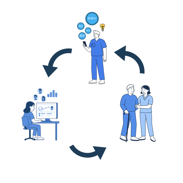 Efficient, integrated learning across JLPT, Workplace Communication & Certified Care Exam